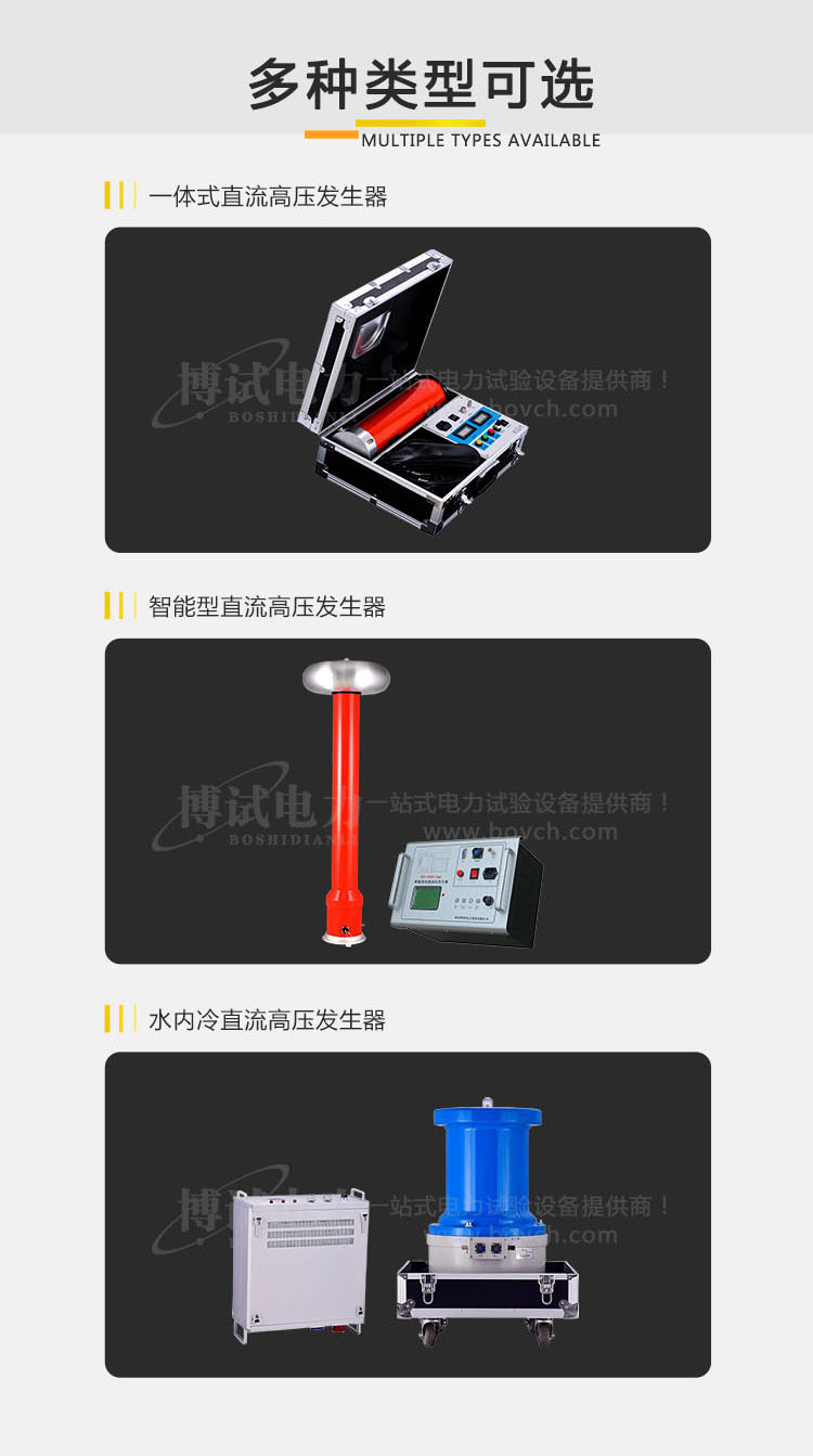 智能型直流高壓發(fā)生器,主要適用于電力部門、工礦、冶金、鋼鐵等企業(yè)動力部門對氧化鋅避雷器、電力電纜、變壓器、斷路器、發(fā)電機等高壓電氣設(shè)備進行直流耐壓試驗或直流泄露電流試驗。