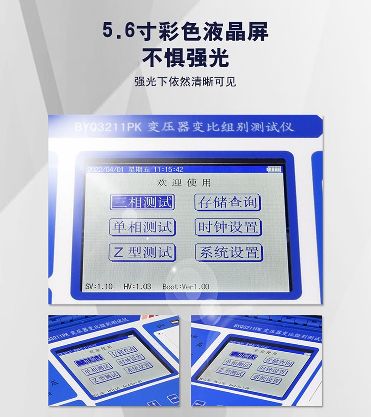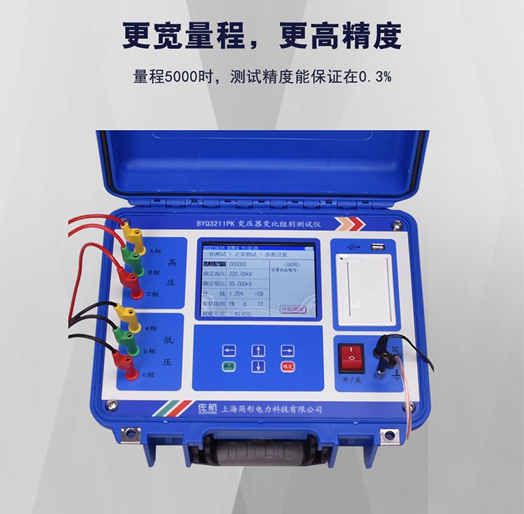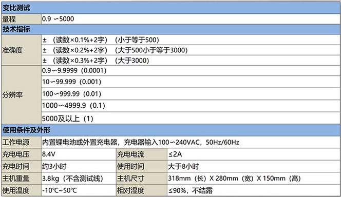 3. 量程寬、精度高,變比測(cè)量范圍可達(dá)10000,且值為10000時(shí)測(cè)試精度保證0.3%。