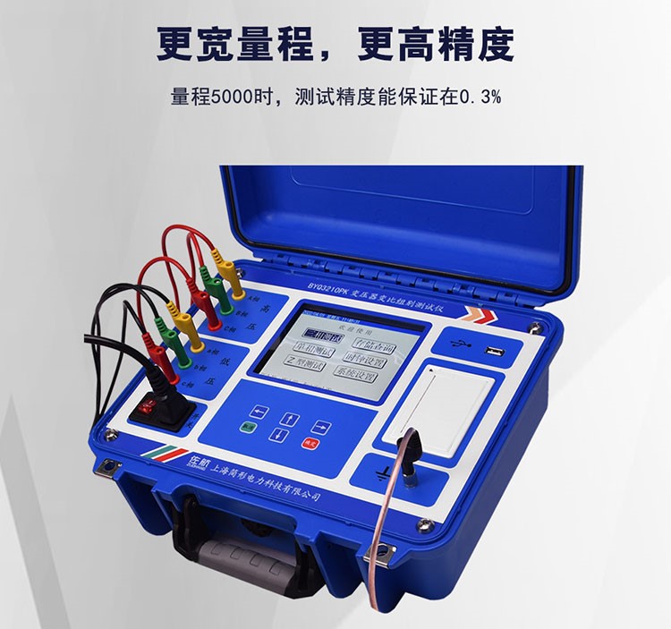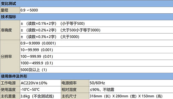 3. 量程寬、精度高,變比測(cè)量范圍可達(dá)5000,且值5000時(shí)測(cè)試精度保證0.3%。