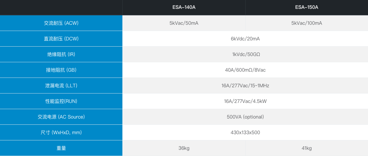 一機滿足所有安規(guī)需求測試。具備交流耐壓(ACW)、直流耐壓(DCW)、絕緣阻抗 (IR)、交流接地阻抗(AC GB)、導通檢測(GC)、接觸電流(TC)、功率測試(RT)以及內(nèi)建交流電源共七種功能,堪稱為實驗室的好伙伴,功能完整的高效能機種。