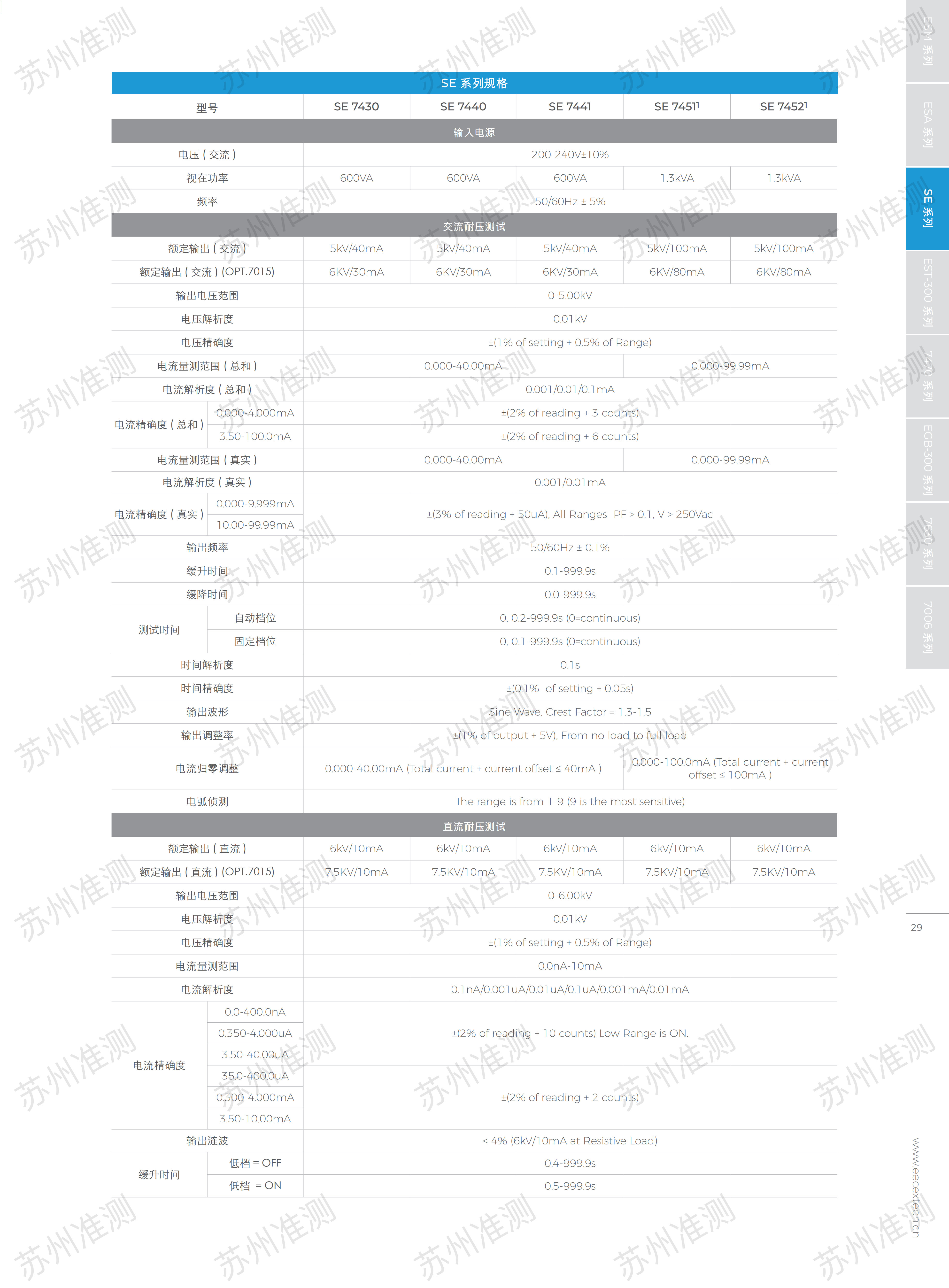新一代的 SE 系列四合一安規(guī)測(cè)試儀效能再升級(jí),結(jié)合了業(yè)界指標(biāo)性的 ARC 電弧偵測(cè)功能,高精度四線測(cè)量及