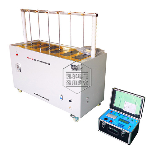 KEXST-B型本設(shè)備使用時(shí),多6個(gè)試件放置于不銹鋼專用容器中,由電動(dòng)調(diào)壓器和高壓試驗(yàn)變壓器產(chǎn)生的0~30KV的高壓作為正極施加于試件上,根據(jù)預(yù)先設(shè)定的測(cè)試電壓對(duì)實(shí)際電壓進(jìn)行調(diào)節(jié),使測(cè)試電壓和實(shí)際電壓相同。這時(shí)將一路電壓信號(hào)和多達(dá)6路電流信號(hào)通過(guò)遠(yuǎn)程通訊電纜傳送至數(shù)據(jù)處理裝置,數(shù)據(jù)處理裝置對(duì)信號(hào)進(jìn)行采集,放大及轉(zhuǎn)換,并對(duì)電壓信號(hào)與額定電壓進(jìn)行比較,根據(jù)不同情況,啟動(dòng)降壓與升壓繼電器,同時(shí)它還監(jiān)測(cè)六路電流的大小,如果六路電流中任一路的泄漏電流超過(guò)額定電流,則微電腦啟動(dòng)故障繼電器對(duì)應(yīng)回路的指示燈亮,高壓測(cè)量裝置也發(fā)出聲光報(bào)警。如果六路電流都正常,則試驗(yàn)時(shí)間結(jié)束后,測(cè)試電壓降至零,可能要求打印出測(cè)試報(bào)告。