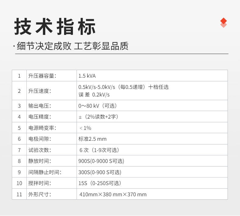 2. 升壓速度 0.5kV/s-5.0kV/s(每0.5遞增)十檔任選